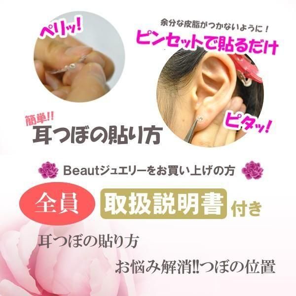 表面がブレスタイプのシールを採用し通気性が格段にアップ! 肌かぶれ対策、シールの持ちが向上しました。 お仕事などでジュエリー付シールが使用出来ないお客様に☆ チタン粒タイプ、セラミック粒タイプからお選びくださいませ。 チタンとセラミックの違いについて ・金属(チタン)と非金属(セラミック)の違いです。 ・チタンは金、銀よりもアレルギー反応は少ないです。 ・チタン粒よりセラミック粒の方が硬いです。 ・セラミック粒よりチタン粒の方が強度があります。 ・セラミックは非金属ですのでアレルギーフリーです。 ・粒の大きさはチタン1.2mm、セラミック1.25mmと少しだけ大きいですが、 色が違うだけで、その他はほとんど変わりございません。 ※チタンはシルバー色、セラミックは白色です。 効果はセラミック粒よりチタン粒の方が微弱電流が流れる為、 若干ツボがずれても効果はございますが、 つぼにしっかり施術出来ていればほぼ効果に変わりは御座いません。 ![]() ![]() 1シート20粒×20シート ・クリア(ジェエリーなし) 【寸法】 シート巾:20mm シートの長さ:110mm テープ直径:7mm 【材料構成】 粘着テープ:医療用テープ 台紙:PETセパレーター Made in china 【粒】 チタン粒 1,2mm セラミック粒 1,25mm Made in japan 【注意点】 ■衛生上、3日〜1週間でお取り換えください。 ■お風呂等、水分を含んだ状態の時は直接触れないよう、タオルで軽く押さえるかドライヤーで乾かしてください。 ■上記の金属及び粘着剤含有物質にアレルギーのある方、テープかぶれ、チタンかぶれのある方、妊娠中の方はご使用をお控えください。 ![]()